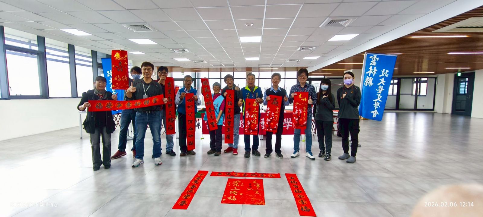 安排在上週五中用餐時間,於雲科廠辦公大樓4樓的員工餐廳為大家進行本年度的年節前充滿藝術氣息的活動。看見同仁歡喜的拿到屬於自己的春聯,一整個年味也濃郁了起來~